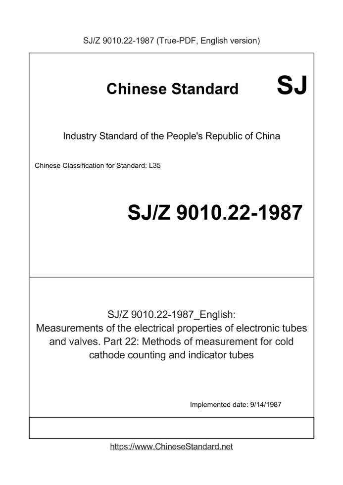 Delivery: <= 3 days. True-PDF full-copy in English will be manually translated and delivered via email. SJZ9010.22-1987: Measurements of the electrical properties of electronic tubes and valves. Part 22: Methods of measurement for cold cathode counting and indicator tubes