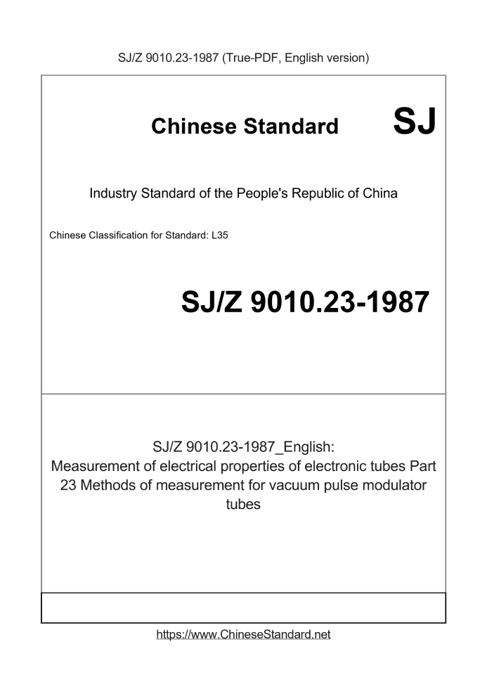 Delivery: <= 3 days. True-PDF full-copy in English will be manually translated and delivered via email. SJZ9010.23-1987: Measurement of electrical properties of electronic tubes Part 23 Methods of measurement for vacuum pulse modulator tubes Status: Obsolete