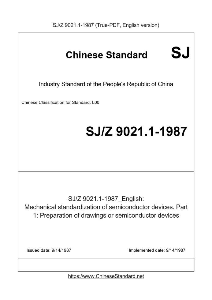 Delivery: <= 4 days. True-PDF full-copy in English will be manually translated and delivered via email. SJZ9021.1-1987: Mechanical standardization of semiconductor devices. Part 1: Preparation of drawings or semiconductor devices