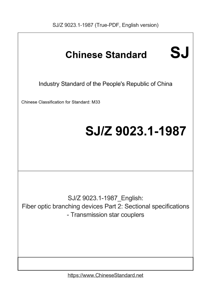 Delivery: <= 3 days. True-PDF full-copy in English will be manually translated and delivered via email. SJZ9023.1-1987: Fiber optic branching devices Part 2: Sectional specifications - Transmission star couplers Status: Obsolete SJZ9023.1: Historical versions