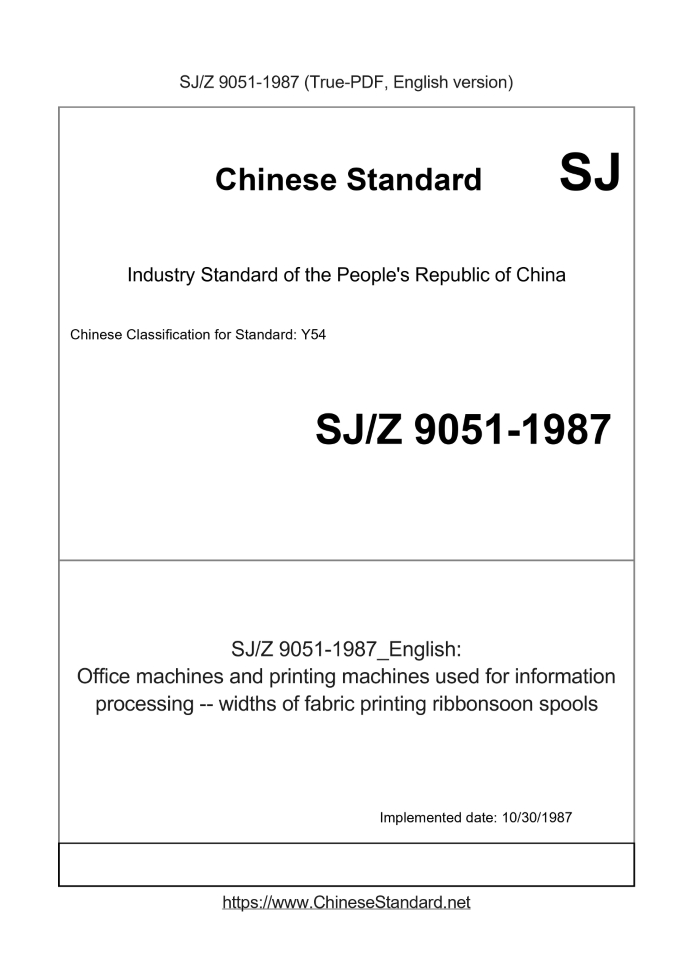 Delivery: <= 3 days. True-PDF full-copy in English will be manually translated and delivered via email. SJZ9051-1987: Office machines and printing machines used for information processing -- widths of fabric printing ribbonsoon spools Status: Obsolete