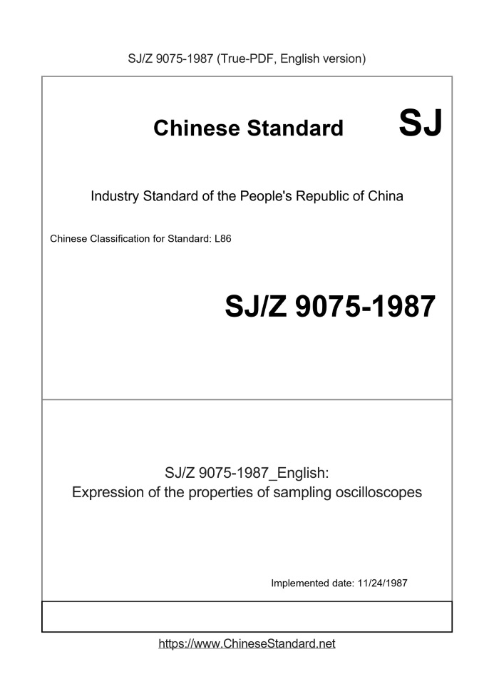Delivery: <= 5 days. True-PDF full-copy in English will be manually translated and delivered via email. SJZ9075-1987: Expression of the properties of sampling oscilloscopes Status: Obsolete