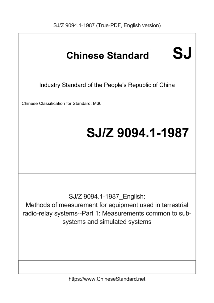 Basic dataStandard ID: SJ/Z 9094.1-1987 (SJ/Z9094.1-1987)Description (Translated English): Methods of measurement for equipment used in terrestrial radio-relay systems--Part 1: Measurements common to sub-systems and simulated systems Sector / Industry: Electronics Industry Standard Classification of Chinese Standard: M36 Word Count Estimation: 47,414 Adopted Standard: IEC 487-1-84, IDT Tips & Frequently Asked Questions:Question 1: How long will the true-PDF of SJZ9094.1-1987_English be delivered?Answer: Upon your order, we will start to translate SJZ9094.1-1987_English as soon as possible, and keep you informed of the progress. The lead time is typically 4 ~ 6 working days. The lengthier the document the longer the lead time.Question 2: Can I share the purchased PDF of SJZ9094.1-1987_English with my colleagues?Answer: Yes. The purchased PDF of SJZ9094.1-1987_English will be deemed to be sold to your employer/organization who actually pays for it, including your colleagues and your employer's intranet.Question 3: Does the price include tax/VAT?Answer: Yes. Our tax invoice, downloaded/delivered in 9 seconds, includes all tax/VAT and complies with 100+ countries' tax regulations (tax exempted in 100+ countries) -- See Avoidance of Double Taxation Agreements (DTAs): List of DTAs signed between Singapore and 100+ countriesQuestion 4: Do you accept my currency other than USD?Answer: Yes. If you need your currency to be printed on the invoice, please write an email to Sales@ChineseStandard.net. In 2 working-hours, we will create a special link for you to pay in any currencies. Otherwise, follow the normal steps: Add to Cart -- Checkout -- Select your currency to pay. |