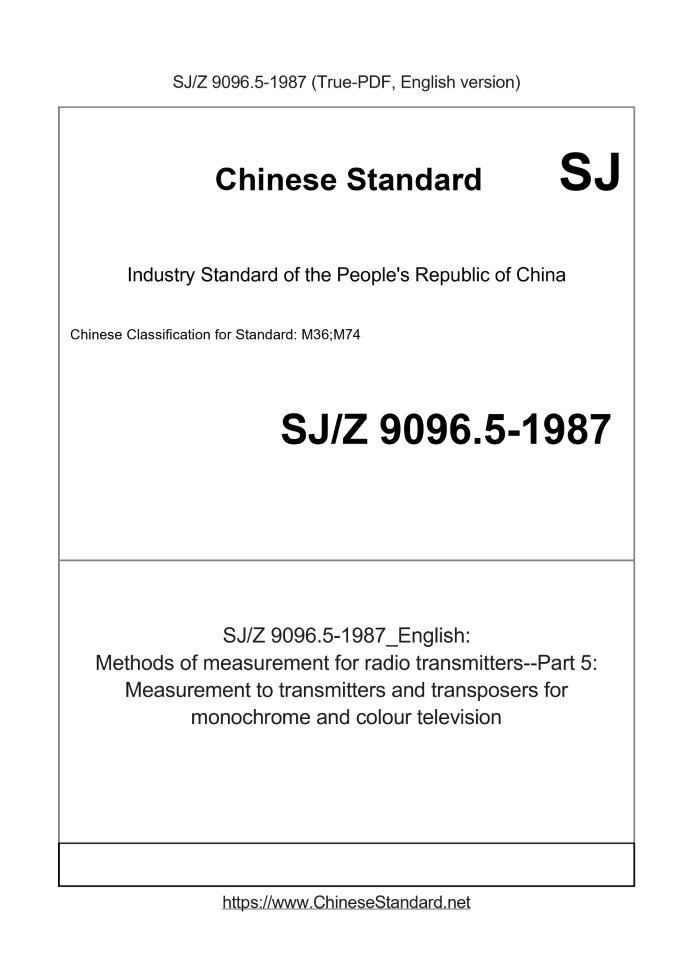 Basic dataStandard ID: SJ/Z 9096.5-1987 (SJ/Z9096.5-1987)Description (Translated English): Methods of measurement for radio transmitters--Part 5: Measurement to transmitters and transposers for monochrome and colour television Sector / Industry: Electronics Industry Standard Classification of Chinese Standard: M36;M74 Word Count Estimation: 81,840 Adopted Standard: IEC 244-5-71, IDT Tips & Frequently Asked Questions:Question 1: How long will the true-PDF of SJZ9096.5-1987_English be delivered?Answer: Upon your order, we will start to translate SJZ9096.5-1987_English as soon as possible, and keep you informed of the progress. The lead time is typically 5 ~ 8 working days. The lengthier the document the longer the lead time.Question 2: Can I share the purchased PDF of SJZ9096.5-1987_English with my colleagues?Answer: Yes. The purchased PDF of SJZ9096.5-1987_English will be deemed to be sold to your employer/organization who actually pays for it, including your colleagues and your employer's intranet.Question 3: Does the price include tax/VAT?Answer: Yes. Our tax invoice, downloaded/delivered in 9 seconds, includes all tax/VAT and complies with 100+ countries' tax regulations (tax exempted in 100+ countries) -- See Avoidance of Double Taxation Agreements (DTAs): List of DTAs signed between Singapore and 100+ countriesQuestion 4: Do you accept my currency other than USD?Answer: Yes. If you need your currency to be printed on the invoice, please write an email to Sales@ChineseStandard.net. In 2 working-hours, we will create a special link for you to pay in any currencies. Otherwise, follow the normal steps: Add to Cart -- Checkout -- Select your currency to pay. |