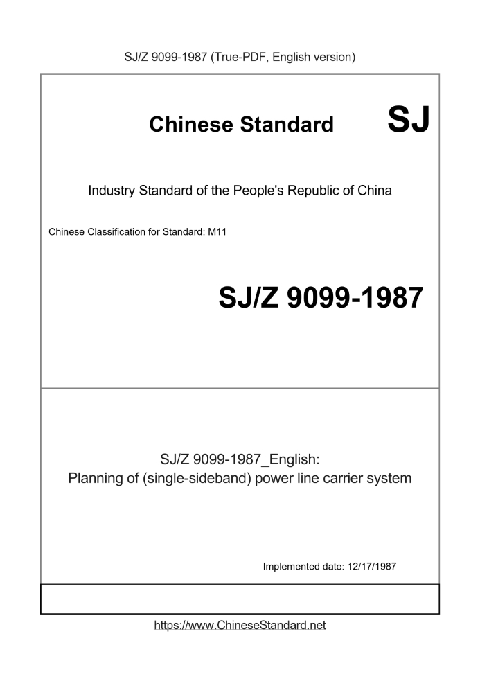 Delivery: <= 4 days. True-PDF full-copy in English will be manually translated and delivered via email. SJZ9099-1987: Planning of (single-sideband) power line carrier system