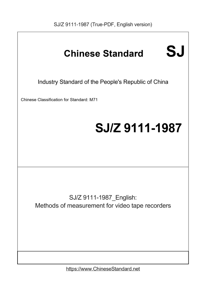 Delivery: <= 3 days. True-PDF full-copy in English will be manually translated and delivered via email. SJZ9111-1987: Methods of measurement for video tape recorders Status: Obsolete