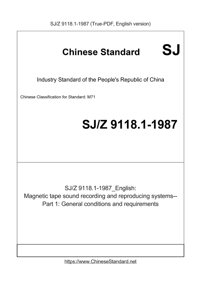 Delivery: <= 3 days. True-PDF full-copy in English will be manually translated and delivered via email. SJZ9118.1-1987: Magnetic tape sound recording and reproducing systems--Part 1: General conditions and requirements Status: Obsolete