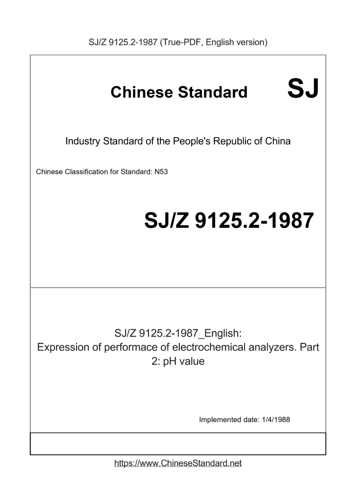 Delivery: <= 3 days. True-PDF full-copy in English will be manually translated and delivered via email. SJZ9125.2-1987: Expression of performace of electrochemical analyzers. Part 2: pH value