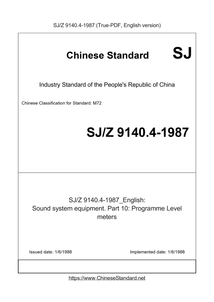 Delivery: <= 3 days. True-PDF full-copy in English will be manually translated and delivered via email. SJZ9140.4-1987: Sound system equipment. Part 10: Programme Level meters Status: Obsolete