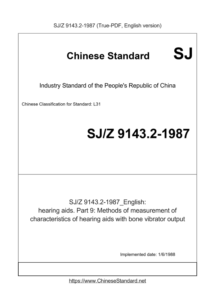 Delivery: <= 3 days. True-PDF full-copy in English will be manually translated and delivered via email. SJZ9143.2-1987: hearing aids. Part 9: Methods of measurement of characteristics of hearing aids with bone vibrator output