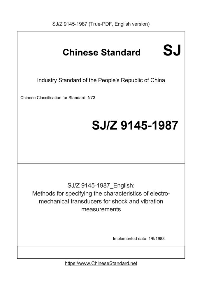 Delivery: <= 3 days. True-PDF full-copy in English will be manually translated and delivered via email. SJZ9145-1987: Methods for specifying the characteristics of electro-mechanical transducers for shock and vibration measurements