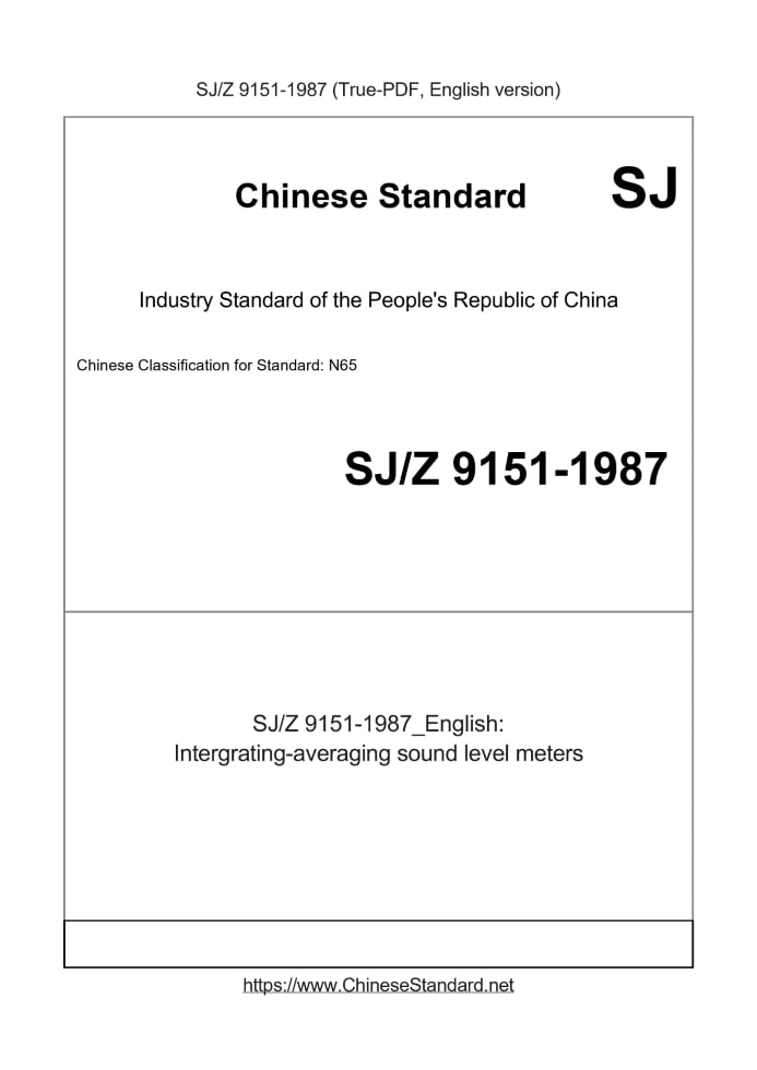 Delivery: <= 3 days. True-PDF full-copy in English will be manually translated and delivered via email. SJZ9151-1987: Intergrating-averaging sound level meters Status: Obsolete