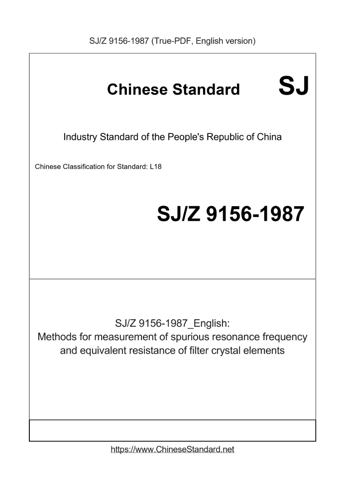 Delivery: <= 3 days. True-PDF full-copy in English will be manually translated and delivered via email. SJZ9156-1987: Methods for measurement of spurious resonance frequency and equivalent resistance of filter crystal elements Status: Obsolete