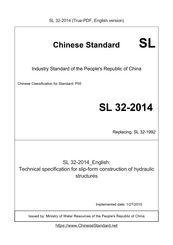 Delivery: <= 13 days. True-PDF full-copy in English will be manually translated and delivered via email. SL 32-2014: Technical specification for slip-form construction of hydraulic structures Status: Valid SL 32: Historical versions