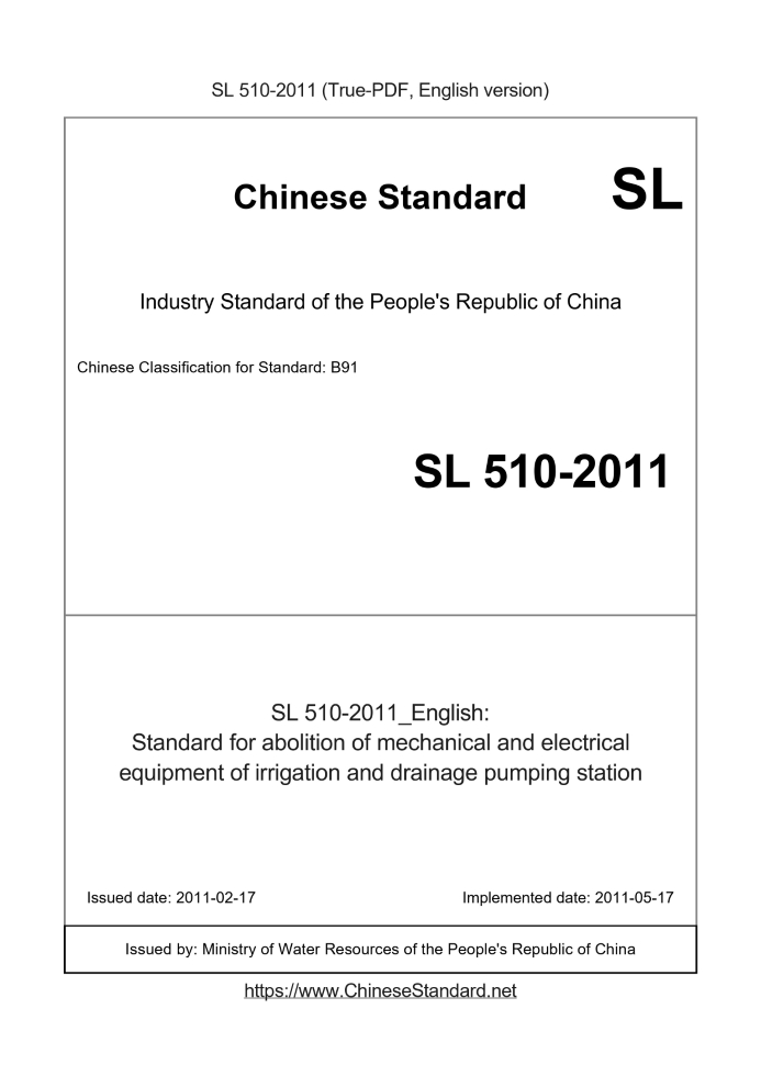 Delivery: <= 6 days. True-PDF full-copy in English will be manually translated and delivered via email. SL 510-2011: Standard for abolition of mechanical and electrical equipment of irrigation and drainage pumping station Status: Valid
