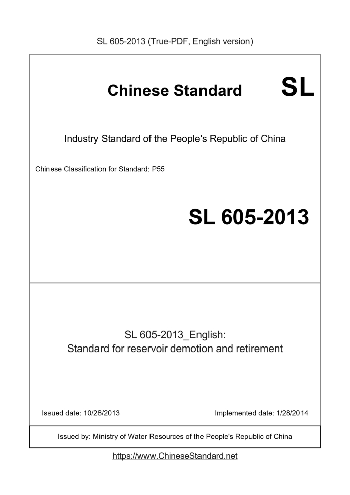 Delivery: <= 5 days. True-PDF full-copy in English will be manually translated and delivered via email. SL 605-2013: Standard for reservoir demotion and retirement Status: Valid