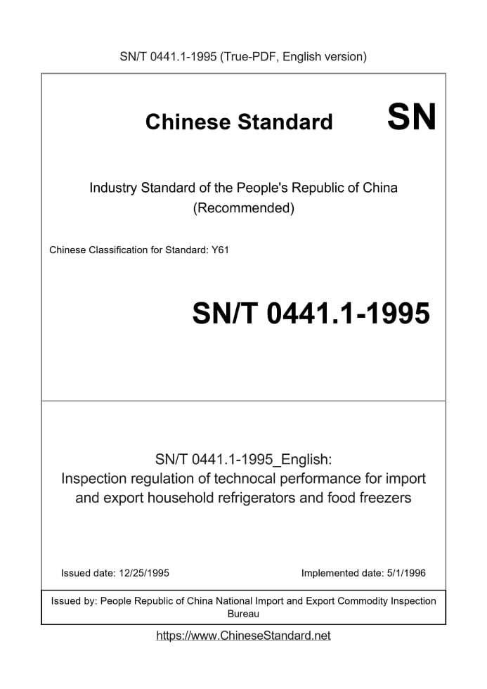 Delivery: <= 2 days. True-PDF full-copy in English will be manually translated and delivered via email. SN/T 0441.1-1995: Inspection regulation of technocal performance for import and export household refrigerators and food freezers Status: Obsolete