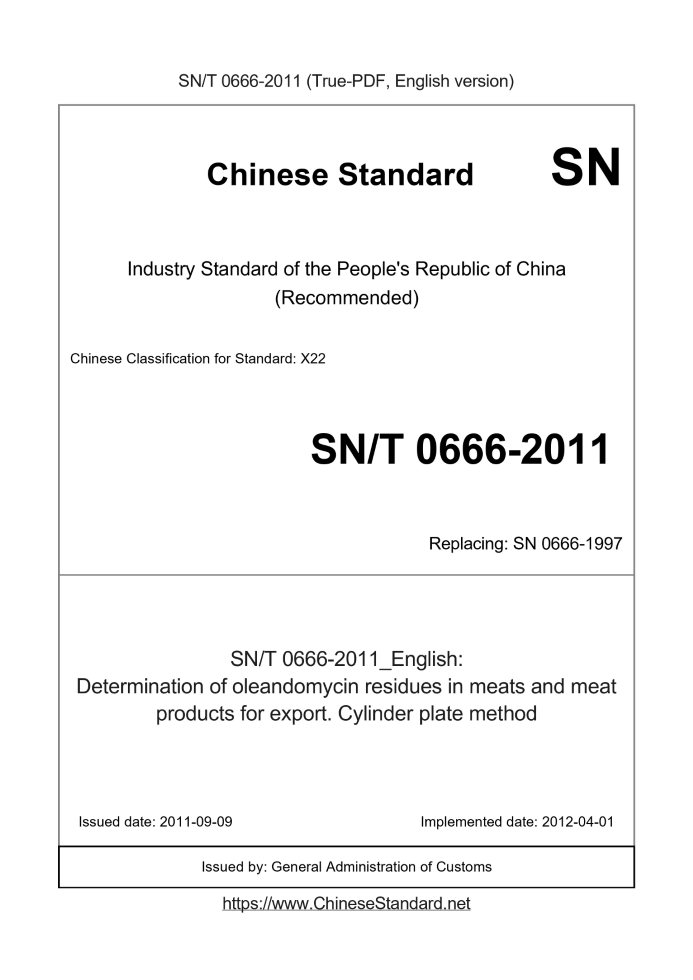 SN/T 0666-2011 English PDFUS$499.00 · In stock