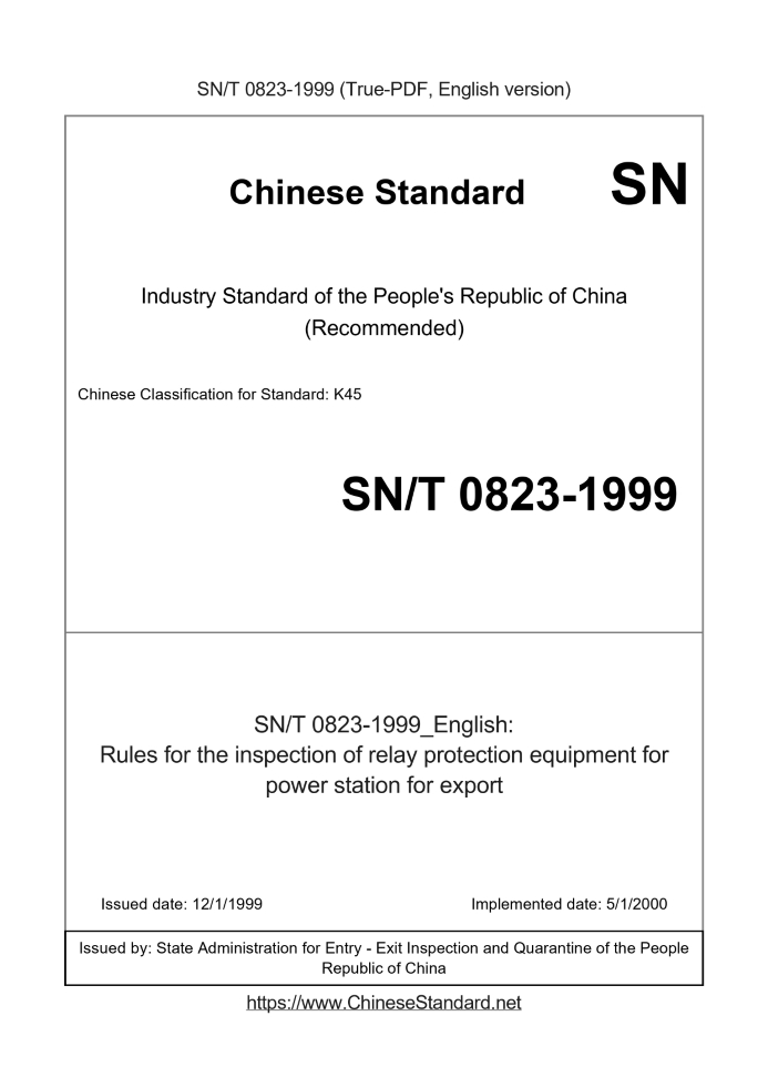 Delivery: <= 3 days. True-PDF full-copy in English will be manually translated and delivered via email. SN/T 0823-1999: Rules for the inspection of relay protection equipment for power station for export Status: Obsolete