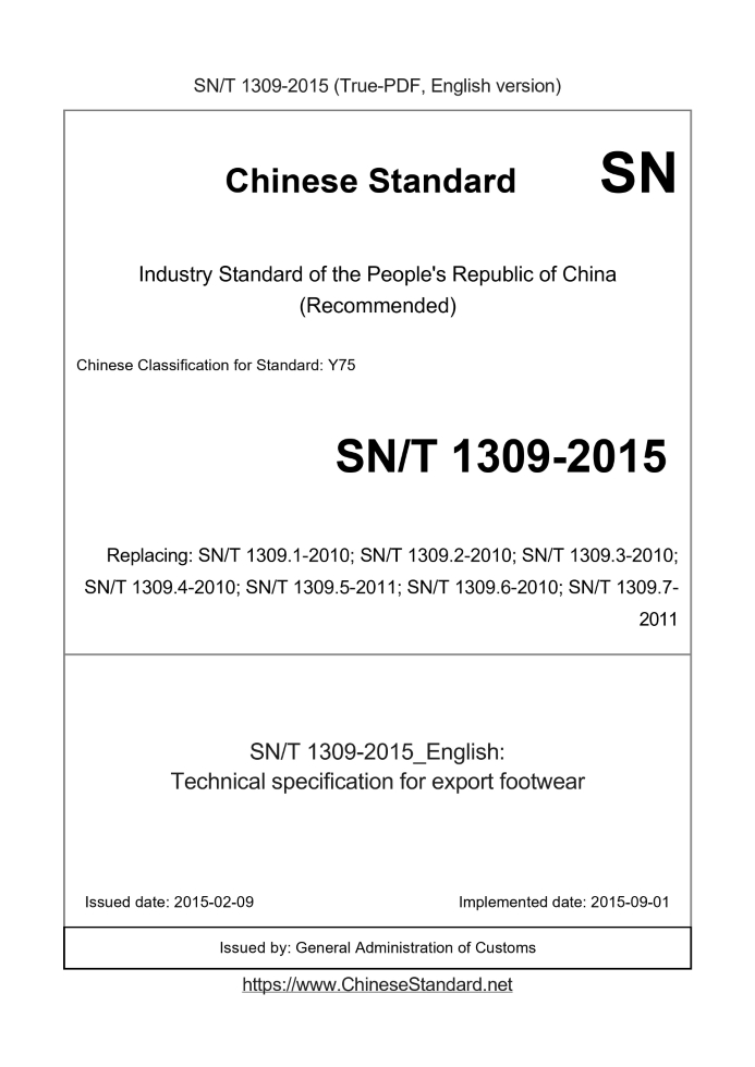 SN/T 1309-2015 English PDFSN/T 1309: Historical versions