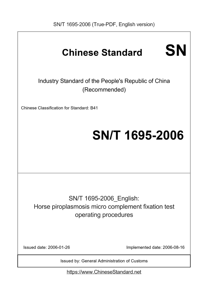 SN/T 1695-2006 English PDF