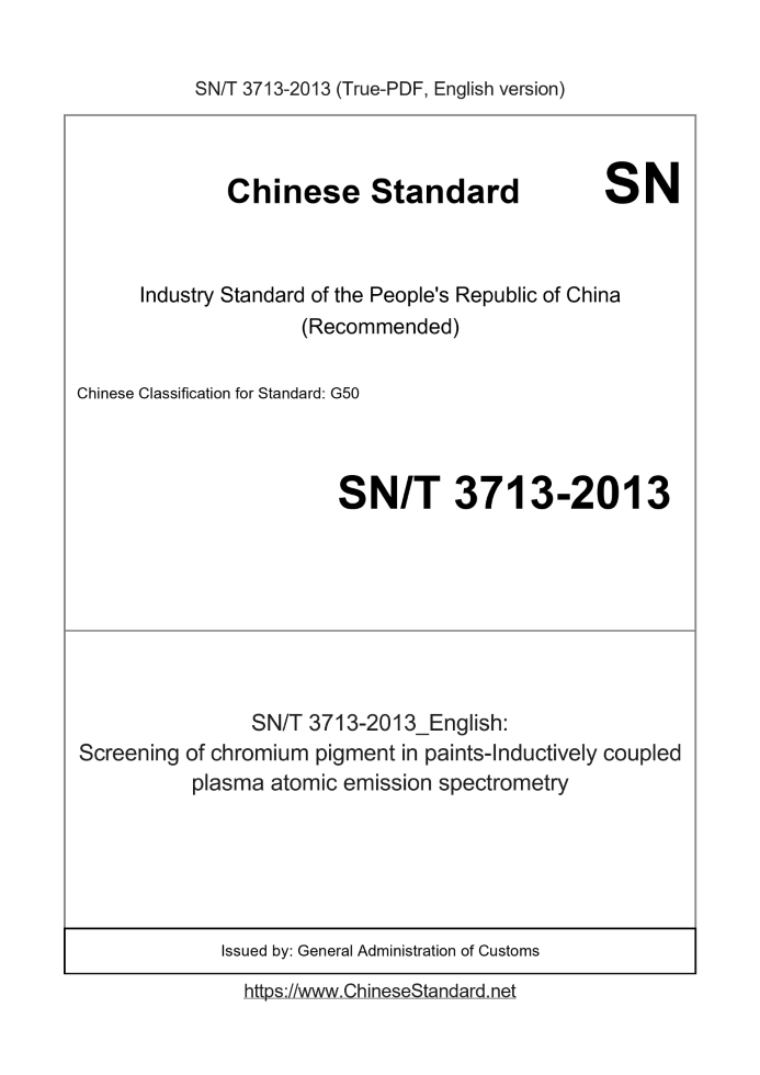 US$209.00 · In stock · Download in 9 secondsSN/T 3713-2013: Screening of chromium pigment in paints-Inductively coupled plasma atomic emission spectrometry