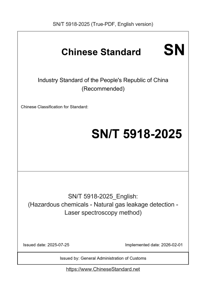 | SN/T 5918-2025 | English | 439 | Add to Cart | 4 days [Need to translate] | (Hazardous chemicals - Natural gas leakage detection - Laser spectroscopy method) |