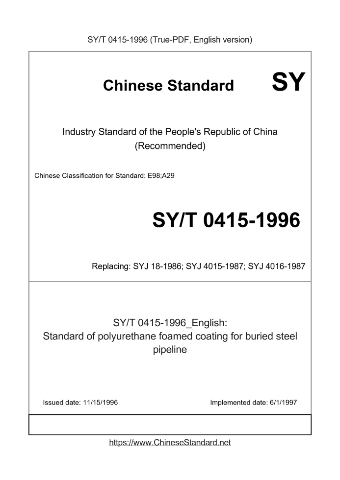 Basic dataStandard ID: SY/T 0415-1996 (SY/T0415-1996)Description (Translated English): Standard of polyurethane foamed coating for buried steel pipeline Sector / Industry: Oil & Gas Industry Standard (Recommended) Classification of Chinese Standard: E98;A29 Classification of International Standard: 75.200; 25.220 Word Count Estimation: 69,641 Date of Issue: 11/15/1996 Date of Implementation: 6/1/1997 Older Standard (superseded by this standard): SYJ 18-1986; SYJ 4015-1987; SYJ 4016-1987 Quoted Standard: GB/T 1040-1992; GB/T 1408-1989; GB/T 1410-1989; GB/T 1633-1979; GB/T 1720-1979; GB/T 1731-1993; GB/T 1732-1993; GB/T 1763-1979; GB/T 1842-1980; GB/T 2792-1981; GB/T 3682-1983; GB/T 4472-1984; GB/T 5470-1985; GB/T 6112-1985; GB/T 6343-1995; GB/T 8813-1988; GB/T 8923-1988; GB/T 12008.1-1989; GB/T 12008.2-1989; GB/T 12008.3-1989; GB/T 12008.4-1989; GB/T 12008.5-1989; GB/T 12008.6-1989; GB/T 12009.1-1989; GB/T 12009.2-1989; GB/T 12009.3-1989; GB/T 12009.4-1989; SY/T 4013-1995 Regulation (derived from): China National Petroleum Corporation Files (96) China-Oil-Tech-Supervision No. 561 Summary: This standard applies to the transmission medium temperature does not exceed 100 �� of buried steel pipeline corrosion foam insulation design, construction and acceptance. Tips & Frequently Asked Questions:Question 1: How long will the true-PDF of SY/T 0415-1996_English be delivered?Answer: Upon your order, we will start to translate SY/T 0415-1996_English as soon as possible, and keep you informed of the progress. The lead time is typically 6 ~ 10 working days. The lengthier the document the longer the lead time.Question 2: Can I share the purchased PDF of SY/T 0415-1996_English with my colleagues?Answer: Yes. The purchased PDF of SY/T 0415-1996_English will be deemed to be sold to your employer/organization who actually pays for it, including your colleagues and your employer's intranet.Question 3: Does the price include tax/VAT?Answer: Yes. Our tax invoice, downloaded/delivered in 9 seconds, includes all tax/VAT and complies with 100+ countries' tax regulations (tax exempted in 100+ countries) -- See Avoidance of Double Taxation Agreements (DTAs): List of DTAs signed between Singapore and 100+ countriesQuestion 4: Do you accept my currency other than USD?Answer: Yes. If you need your currency to be printed on the invoice, please write an email to Sales@ChineseStandard.net. In 2 working-hours, we will create a special link for you to pay in any currencies. Otherwise, follow the normal steps: Add to Cart -- Checkout -- Select your currency to pay. |