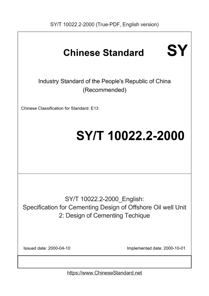 SY/T 10022.2-2000 English PDFUS$519.00 ยท In stock