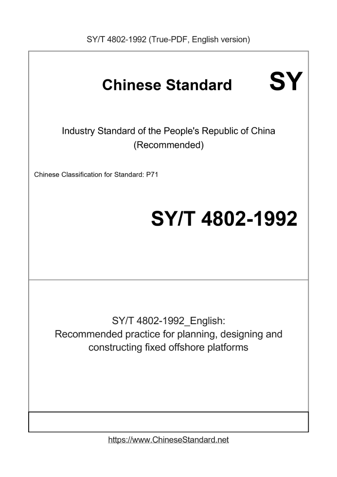 Basic dataStandard ID: SY/T 4802-1992 (SY/T4802-1992)Description (Translated English): Recommended practice for planning, designing and constructing fixed offshore platforms Sector / Industry: Oil & Gas Industry Standard (Recommended) Classification of Chinese Standard: P71 Tips & Frequently Asked Questions:Question 1: How long will the true-PDF of SY/T 4802-1992_English be delivered?Answer: Upon your order, we will start to translate SY/T 4802-1992_English as soon as possible, and keep you informed of the progress. The lead time is typically 1 ~ 3 working days. The lengthier the document the longer the lead time.Question 2: Can I share the purchased PDF of SY/T 4802-1992_English with my colleagues?Answer: Yes. The purchased PDF of SY/T 4802-1992_English will be deemed to be sold to your employer/organization who actually pays for it, including your colleagues and your employer's intranet.Question 3: Does the price include tax/VAT?Answer: Yes. Our tax invoice, downloaded/delivered in 9 seconds, includes all tax/VAT and complies with 100+ countries' tax regulations (tax exempted in 100+ countries) -- See Avoidance of Double Taxation Agreements (DTAs): List of DTAs signed between Singapore and 100+ countriesQuestion 4: Do you accept my currency other than USD?Answer: Yes. If you need your currency to be printed on the invoice, please write an email to Sales@ChineseStandard.net. In 2 working-hours, we will create a special link for you to pay in any currencies. Otherwise, follow the normal steps: Add to Cart -- Checkout -- Select your currency to pay. |