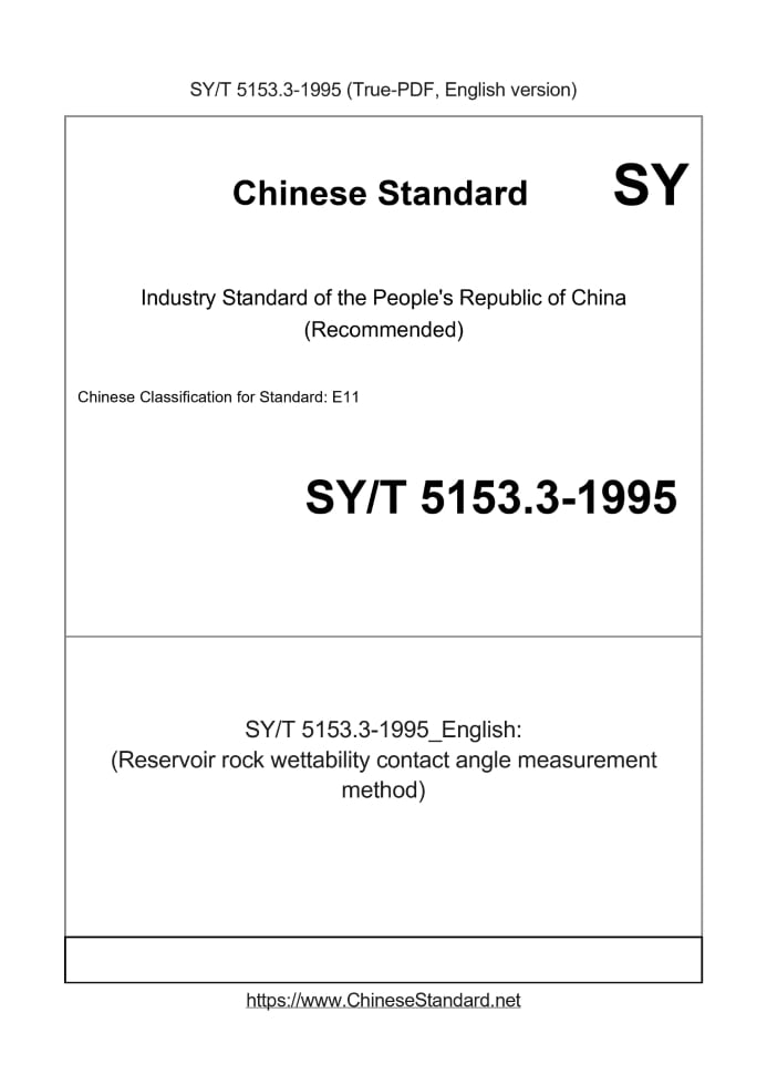 Delivery: <= 2 days. True-PDF full-copy in English will be manually translated and delivered via email. SY/T 5153.3-1995: (Reservoir rock wettability contact angle measurement method) Status: Obsolete