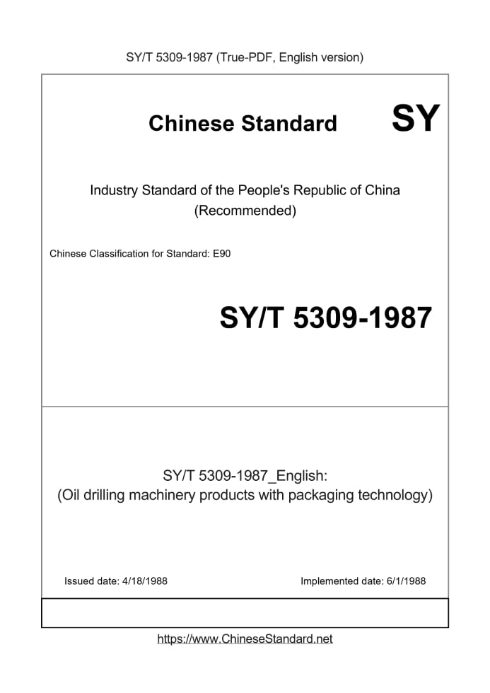 Basic dataStandard ID: SY/T 5309-1987 (SY/T5309-1987)Description (Translated English): (Oil drilling machinery products with packaging technology) Sector / Industry: Oil & Gas Industry Standard (Recommended) Classification of Chinese Standard: E90 Word Count Estimation: 29,280 Date of Issue: 4/18/1988 Date of Implementation: 6/1/1988 Regulation (derived from): Development & Reform Commission Notice 2005 No. 45 Tips & Frequently Asked Questions:Question 1: How long will the true-PDF of SY/T 5309-1987_English be delivered?Answer: Upon your order, we will start to translate SY/T 5309-1987_English as soon as possible, and keep you informed of the progress. The lead time is typically 4 ~ 6 working days. The lengthier the document the longer the lead time.Question 2: Can I share the purchased PDF of SY/T 5309-1987_English with my colleagues?Answer: Yes. The purchased PDF of SY/T 5309-1987_English will be deemed to be sold to your employer/organization who actually pays for it, including your colleagues and your employer's intranet.Question 3: Does the price include tax/VAT?Answer: Yes. Our tax invoice, downloaded/delivered in 9 seconds, includes all tax/VAT and complies with 100+ countries' tax regulations (tax exempted in 100+ countries) -- See Avoidance of Double Taxation Agreements (DTAs): List of DTAs signed between Singapore and 100+ countriesQuestion 4: Do you accept my currency other than USD?Answer: Yes. If you need your currency to be printed on the invoice, please write an email to Sales@ChineseStandard.net. In 2 working-hours, we will create a special link for you to pay in any currencies. Otherwise, follow the normal steps: Add to Cart -- Checkout -- Select your currency to pay. |