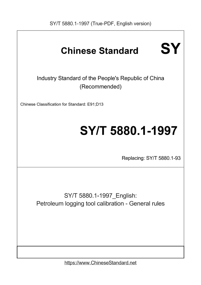 Delivery: <= 3 days. True-PDF full-copy in English will be manually translated and delivered via email. SY/T 5880.1-1997: Petroleum logging tool calibration - General rules Status: Obsolete