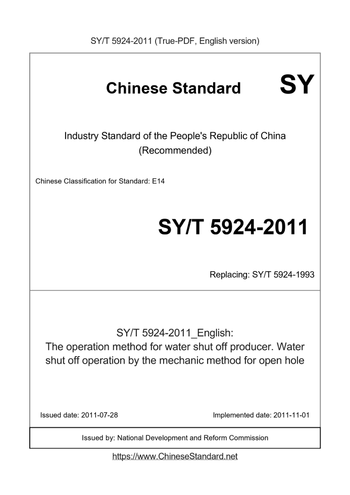 Standard ID: SY/T 5924-2011 (SY/T5924-2011)