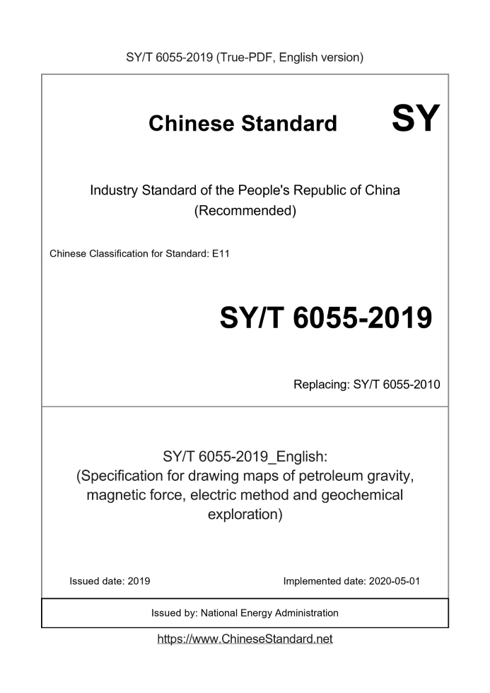 Delivery: <= 4 days. True-PDF full-copy in English will be manually translated and delivered via email. SY/T 6055-2019: (Specification for drawing maps of petroleum gravity, magnetic force, electric method and geochemical exploration) Status: Valid SY/T 6055: Historical versions
