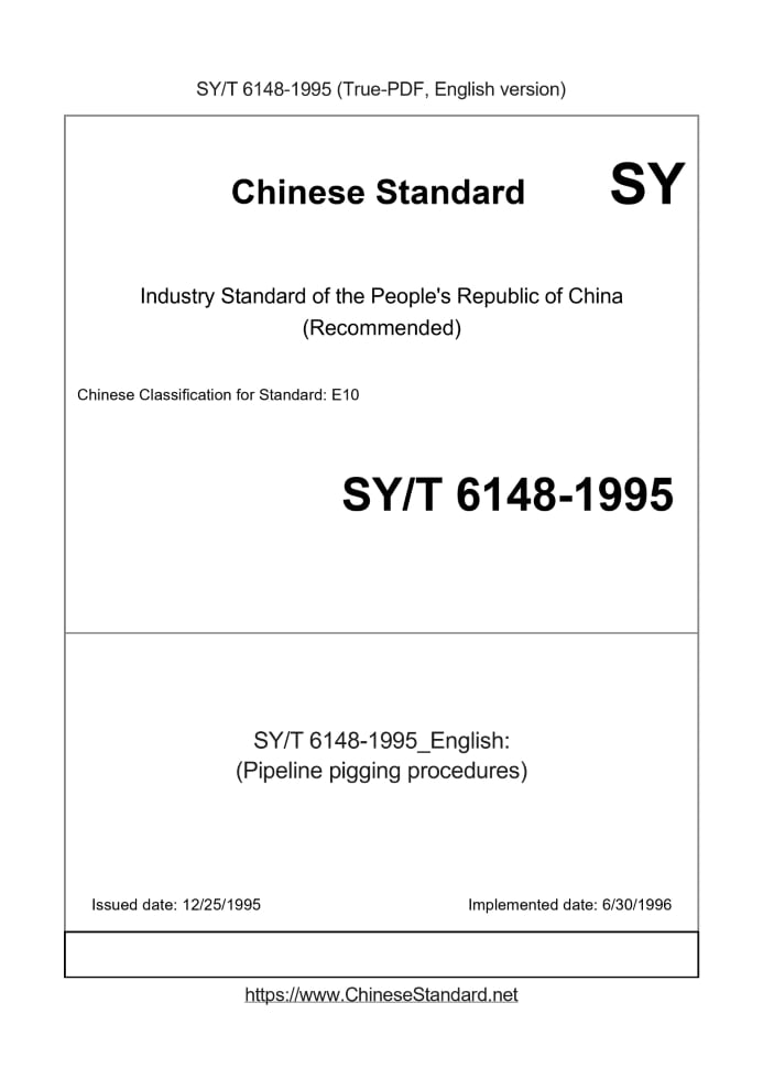Delivery: <= 3 days. True-PDF full-copy in English will be manually translated and delivered via email. SY/T 6148-1995: (Pipeline pigging procedures) Status: Obsolete