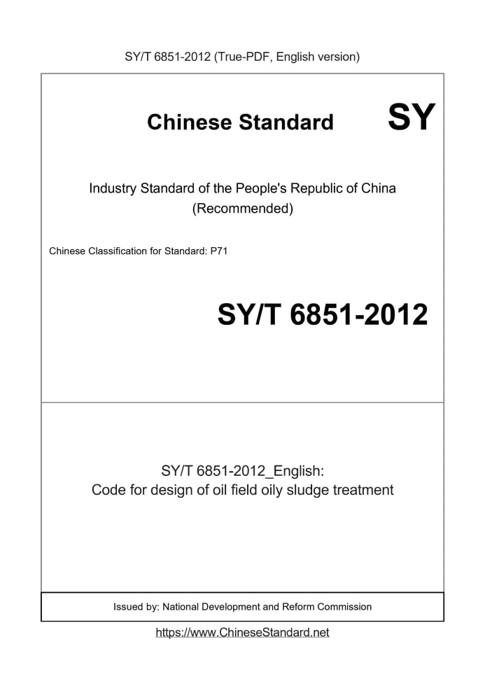 Delivery: <= 8 days. True-PDF full-copy in English will be manually translated and delivered via email. SY/T 6851-2012: Code for design of oil field oily sludge treatment Status: Valid