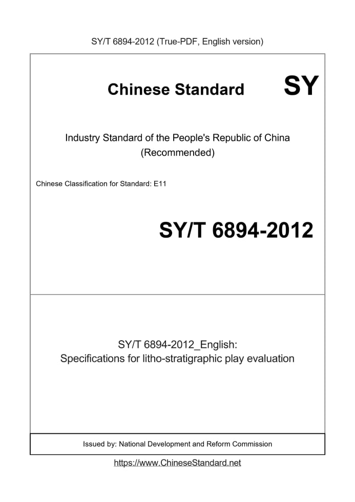 Delivery: <= 3 days. True-PDF full-copy in English will be manually translated and delivered via email. SY/T 6894-2012: Specifications for litho-stratigraphic play evaluation Status: Valid
