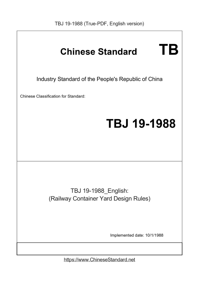 Basic dataStandard ID: TBJ 19-1988 (TBJ19-1988)Description (Translated English): (Railway Container Yard Design Rules) Sector / Industry: Railway & Train Industry Standard Date of Implementation: 10/1/1988 Tips & Frequently Asked Questions:Question 1: How long will the true-PDF of TBJ19-1988_English be delivered?Answer: Upon your order, we will start to translate TBJ19-1988_English as soon as possible, and keep you informed of the progress. The lead time is typically 1 ~ 3 working days. The lengthier the document the longer the lead time.Question 2: Can I share the purchased PDF of TBJ19-1988_English with my colleagues?Answer: Yes. The purchased PDF of TBJ19-1988_English will be deemed to be sold to your employer/organization who actually pays for it, including your colleagues and your employer's intranet.Question 3: Does the price include tax/VAT?Answer: Yes. Our tax invoice, downloaded/delivered in 9 seconds, includes all tax/VAT and complies with 100+ countries' tax regulations (tax exempted in 100+ countries) -- See Avoidance of Double Taxation Agreements (DTAs): List of DTAs signed between Singapore and 100+ countriesQuestion 4: Do you accept my currency other than USD?Answer: Yes. If you need your currency to be printed on the invoice, please write an email to Sales@ChineseStandard.net. In 2 working-hours, we will create a special link for you to pay in any currencies. Otherwise, follow the normal steps: Add to Cart -- Checkout -- Select your currency to pay. |