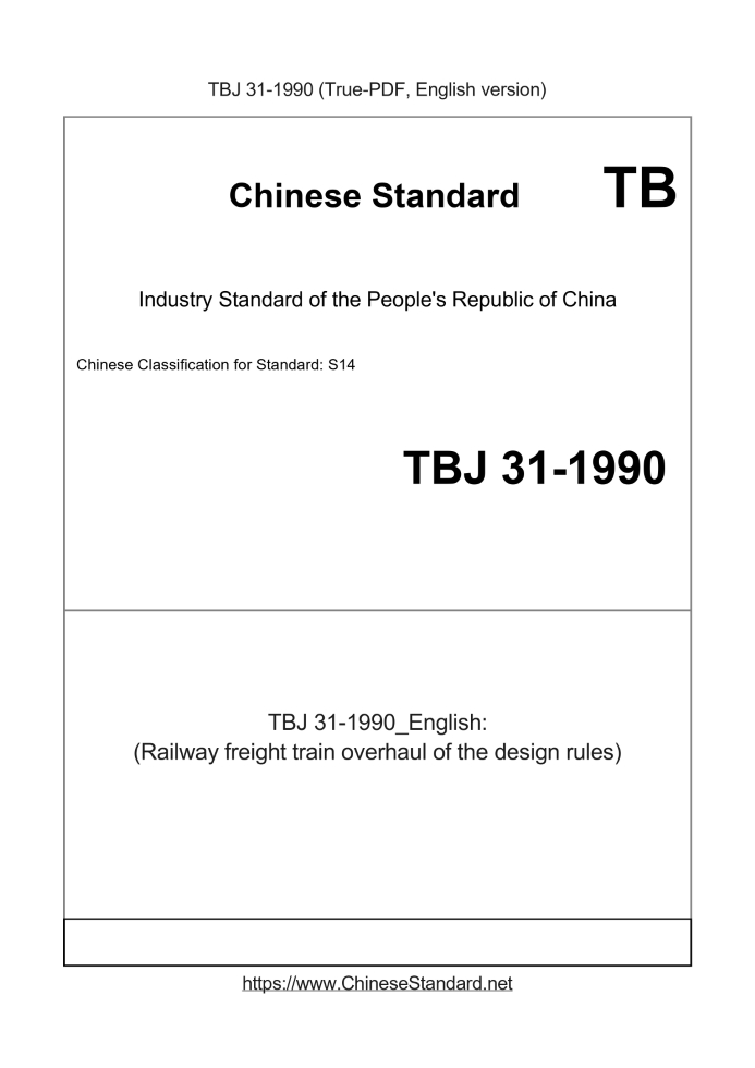 Delivery: <= 5 days. True-PDF full-copy in English will be manually translated and delivered via email. TBJ31-1990: (Railway freight train overhaul of the design rules) Status: Obsolete