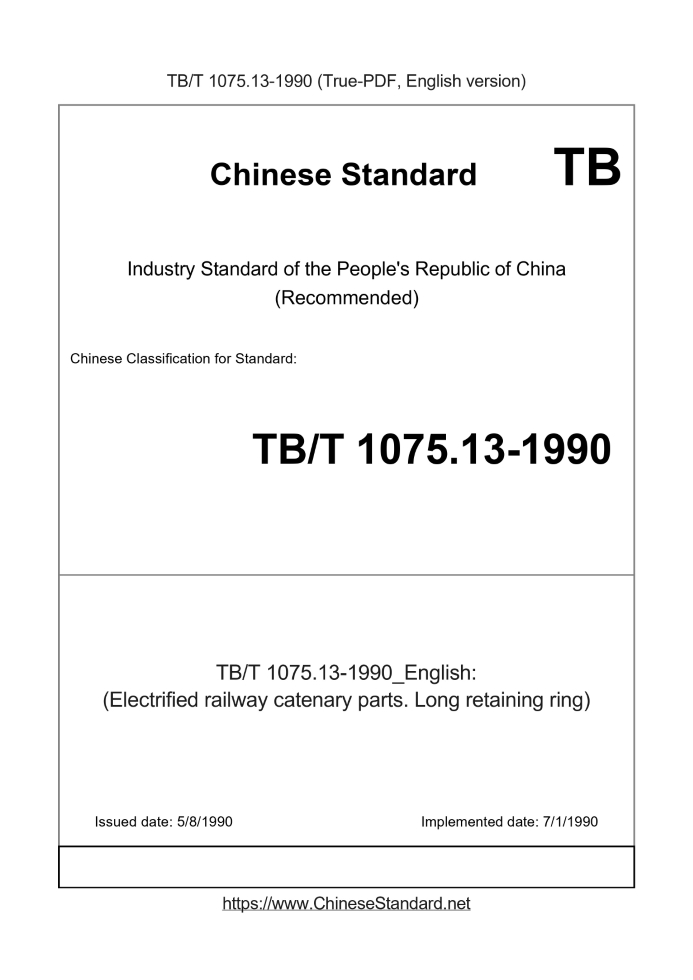 Basic dataStandard ID: TB/T 1075.13-1990 (TB/T1075.13-1990)Description (Translated English): (Electrified railway catenary parts. Long retaining ring) Sector / Industry: Railway & Train Industry Standard (Recommended) Date of Issue: 5/8/1990 Date of Implementation: 7/1/1990 Tips & Frequently Asked Questions:Question 1: How long will the true-PDF of TB/T 1075.13-1990_English be delivered?Answer: Upon your order, we will start to translate TB/T 1075.13-1990_English as soon as possible, and keep you informed of the progress. The lead time is typically 1 ~ 3 working days. The lengthier the document the longer the lead time.Question 2: Can I share the purchased PDF of TB/T 1075.13-1990_English with my colleagues?Answer: Yes. The purchased PDF of TB/T 1075.13-1990_English will be deemed to be sold to your employer/organization who actually pays for it, including your colleagues and your employer's intranet.Question 3: Does the price include tax/VAT?Answer: Yes. Our tax invoice, downloaded/delivered in 9 seconds, includes all tax/VAT and complies with 100+ countries' tax regulations (tax exempted in 100+ countries) -- See Avoidance of Double Taxation Agreements (DTAs): List of DTAs signed between Singapore and 100+ countriesQuestion 4: Do you accept my currency other than USD?Answer: Yes. If you need your currency to be printed on the invoice, please write an email to Sales@ChineseStandard.net. In 2 working-hours, we will create a special link for you to pay in any currencies. Otherwise, follow the normal steps: Add to Cart -- Checkout -- Select your currency to pay. |