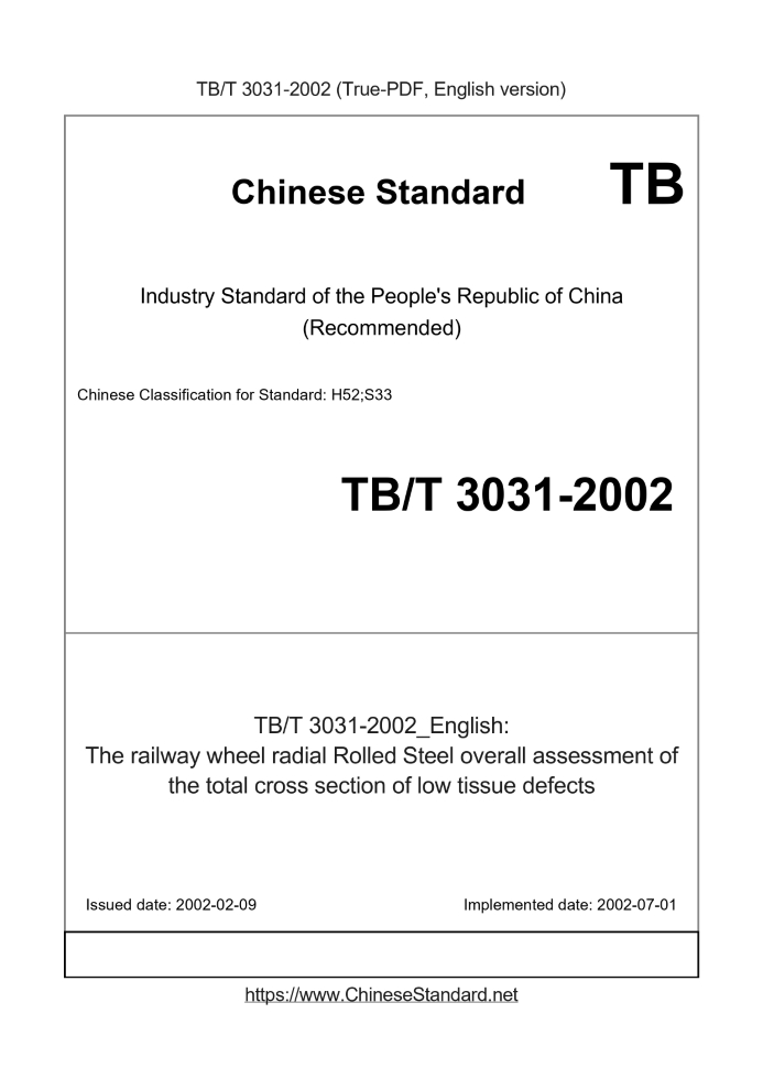 TB/T 3031-2002 English PDFUS$889.00 ยท In stock