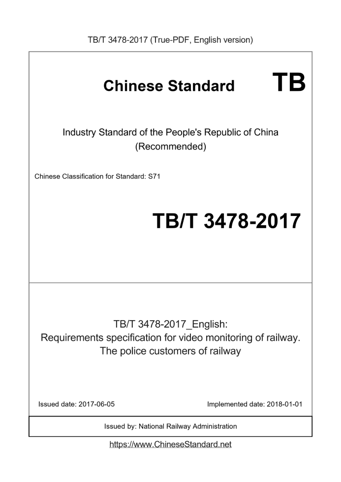 Delivery: <= 4 days. True-PDF full-copy in English will be manually translated and delivered via email. TB/T 3478-2017: Requirements specification for video monitoring of railway. The police customers of railway Status: Valid