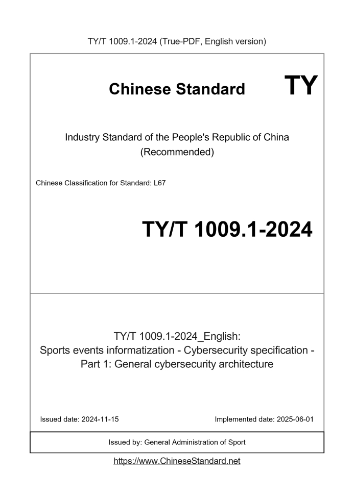TYT1009.1-2024: Sports events informatization - Cybersecurity specification - Part 1: General cybersecurity architecture