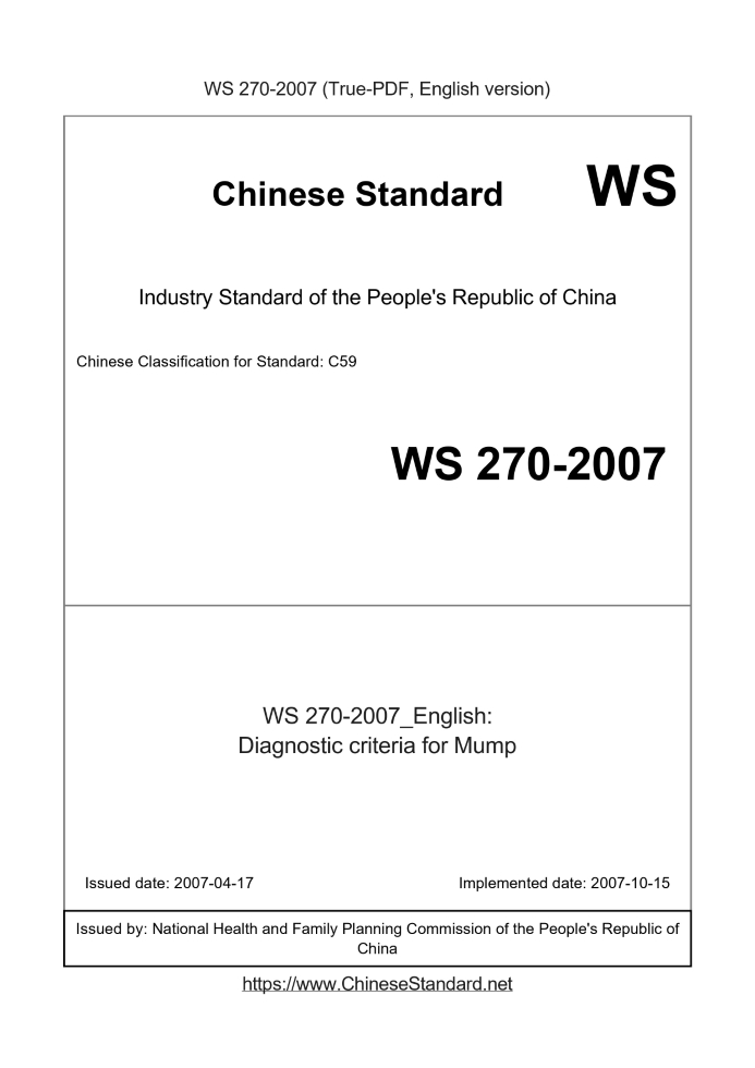 | WS 270-2007 | English | 259 | Add to Cart | 3 days [Need to translate] | Diagnostic criteria for Mump |