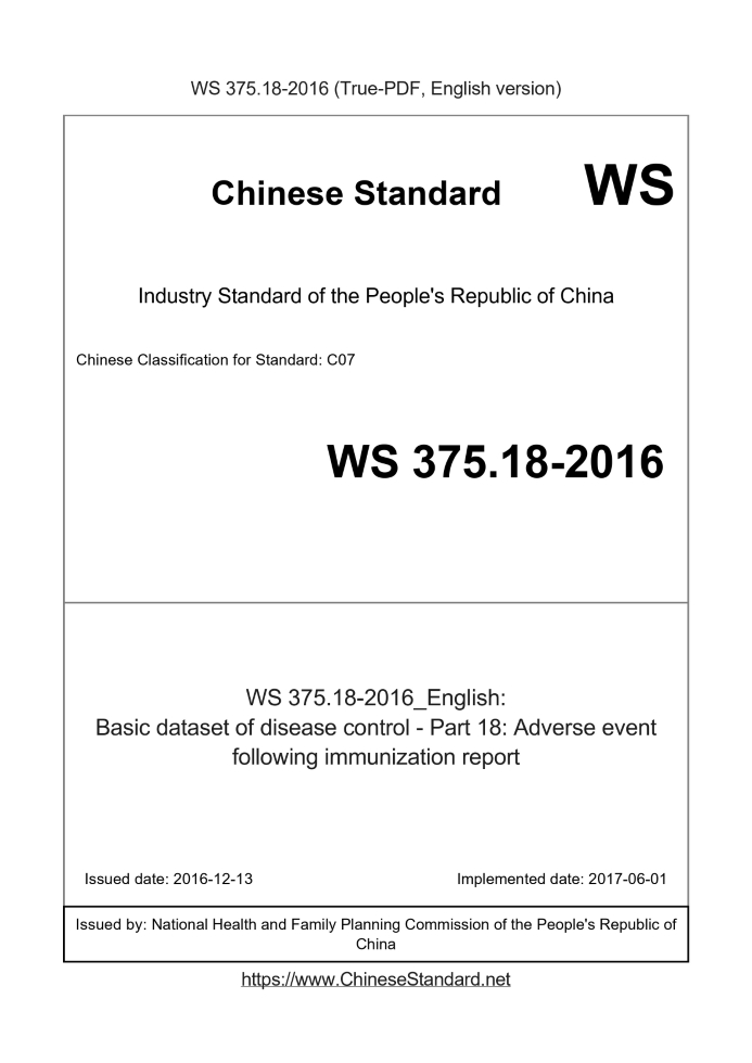 US$529.00 · In stock · Download in 9 secondsWS 375.18-2016: Basic dataset of disease control - Part 18: Adverse event following immunization report