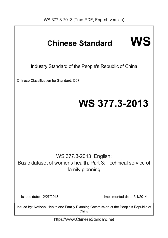 | Summary | This standard specifies the basic family planning services dataset metadata attributes and attribute data elements. This standard applies to the guidance of the national family planning services to develop basic information gathering, storing, sharing, an |