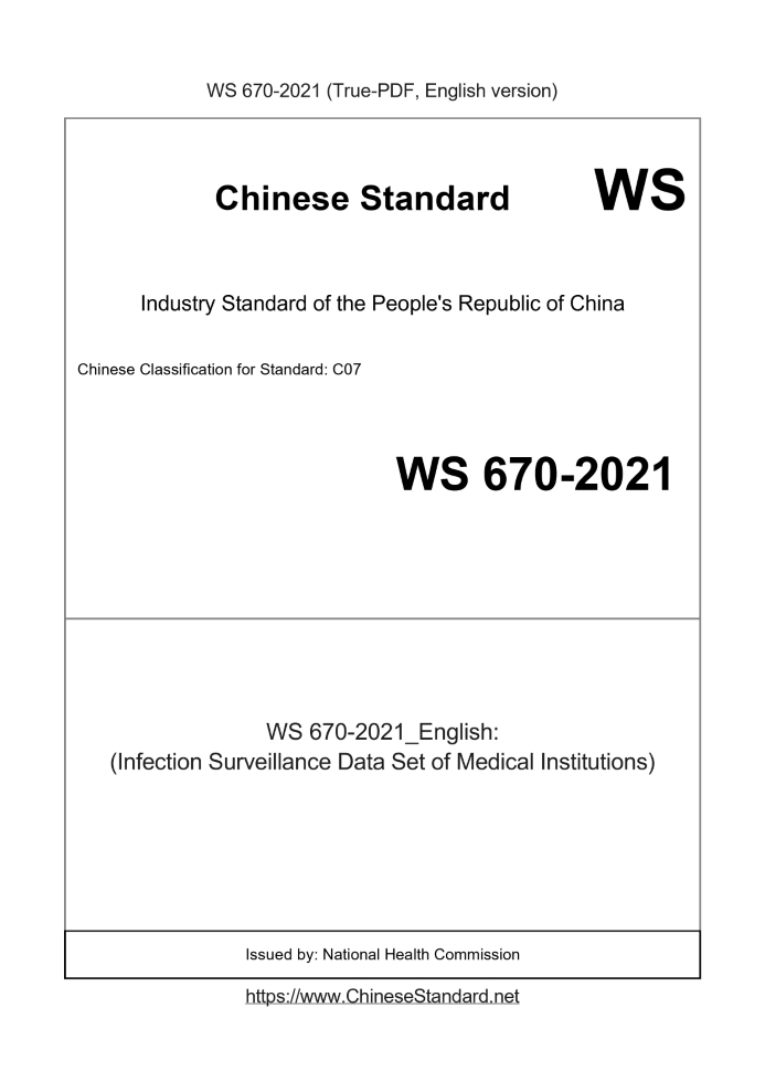 Delivery: <= 6 days. True-PDF full-copy in English will be manually translated and delivered via email. WS 670-2021: (Infection Surveillance Data Set of Medical Institutions) Status: Valid