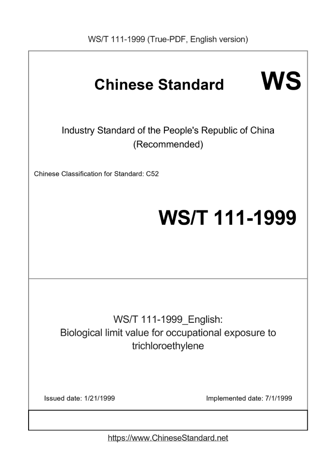 US$179.00 · In stock · Download in 9 secondsWS/T 111-1999: Biological limit value for occupational exposure to trichloroethylene