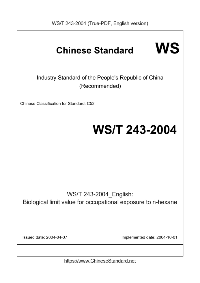 WS/T 243-2004: Biological limit value for occupational exposure to n-hexane
